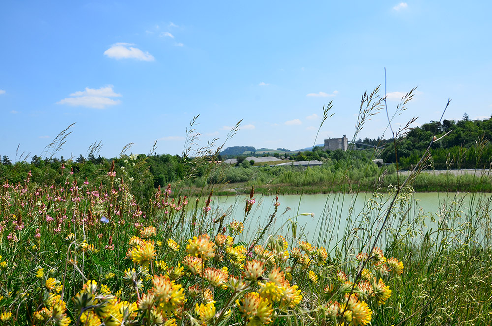 Am Rande der Kiesgrube hat Hot Spots einen Streifen aus Sand- und Kiesbereichen angelegt und so einen artenreichen Trockenstandort geschaffen. Es fanden eine Direktbegrünung und die Ansaat seltener Arten statt, darunter Goldaster, Ähriger Ehrenpreis, Sprossende Felsennelke und Rheinische Flockenblume. Zudem wurden Steinstrukturen zur Förderung von Reptilien und der Schwarzen Mörtelbiene geschaffen. Eine der Strukturen ist seit 2007 durch eine kleine Population von Schwarzen Mörtelbienen besiedelt.